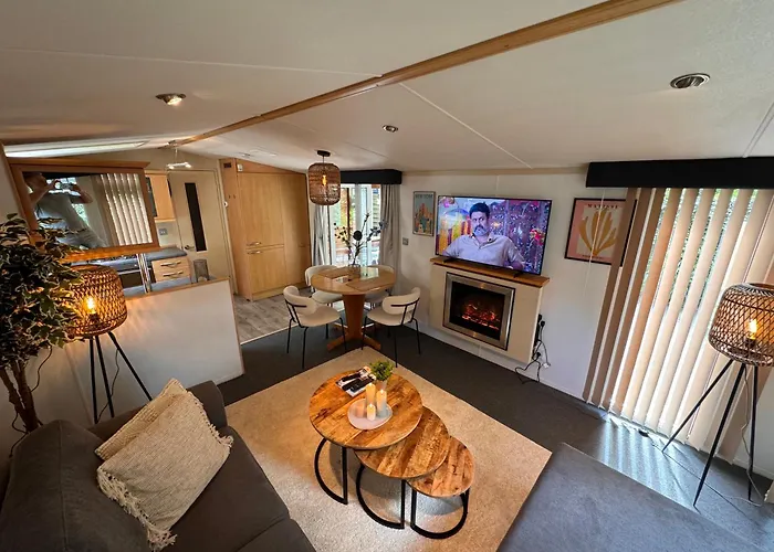 Veluwe Chalet Hoenderloo Private Jacuzzi, Park Swimming Pool And Children'S Entertainment med 1 sovrum, som ligger 2 km från De Woeste Hoeve, erbjuder en utomhuspool, vattenrutschbana. Cirka 15 minuters bilfärd från den 55 m² stora lägenheten hittar du Country Residence Museum Jachthuis Sint Hubertus.